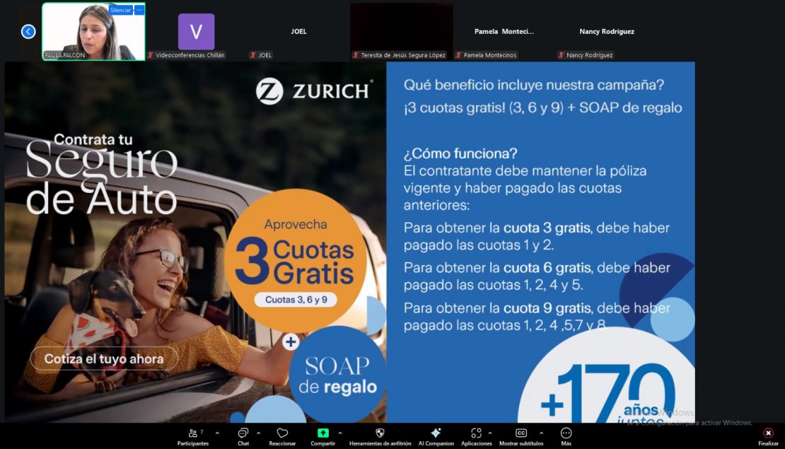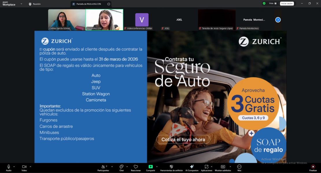 La actividad tiene como propósito principal dar a conocer los distintos productos y beneficios asociados a los seguros ofrecidos por Zurich, así como orientar a los asistentes en la toma de decisiones informadas respecto a la protección personal y familiar. Durante la jornada, se abordarán temáticas relacionadas con seguros de vida, salud, ahorro y cobertura ante imprevistos, además de resolver dudas específicas de los participantes.