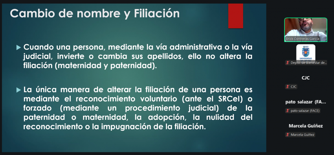 Charla online: «Cambio de nombre». Concepción, dic./2025.
