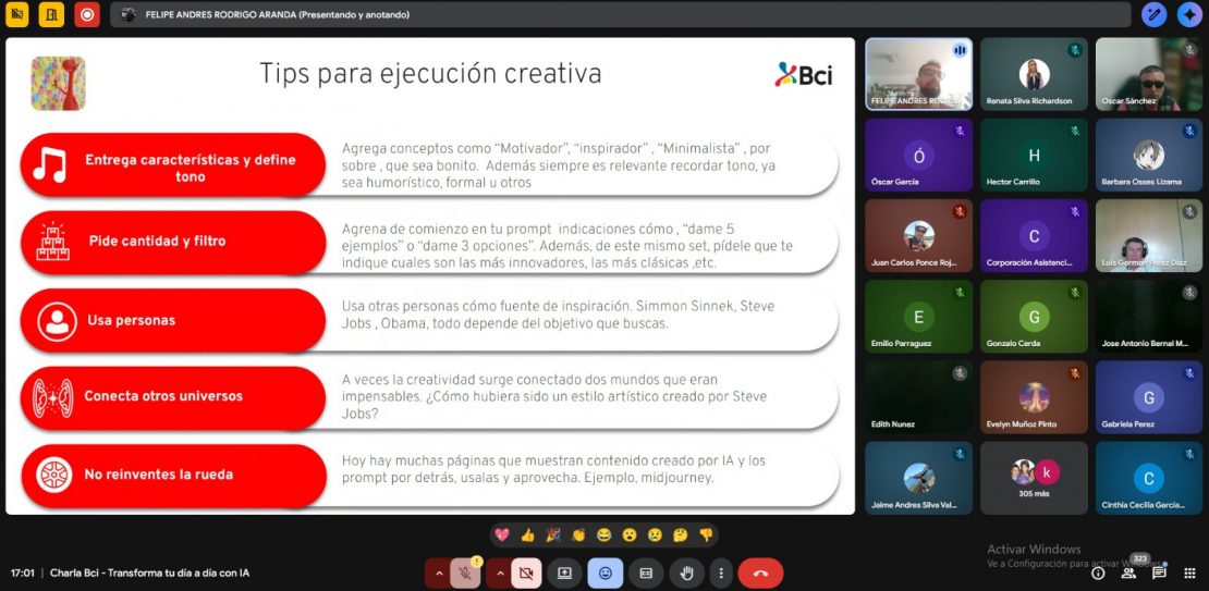 La charla online “Transforma tu Día a Día con IA”, organizada por Convenios BCI y el Servicio de Bienestar del Personal de Chillán – Concepción de la Universidad del Bío-Bío, reunió a numerosos funcionarios(as) interesados(as) en conocer cómo la inteligencia artificial puede mejorar la eficiencia y facilitar tareas cotidianas.