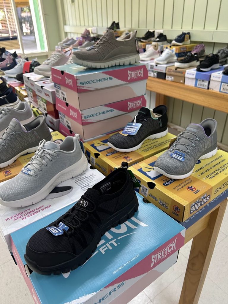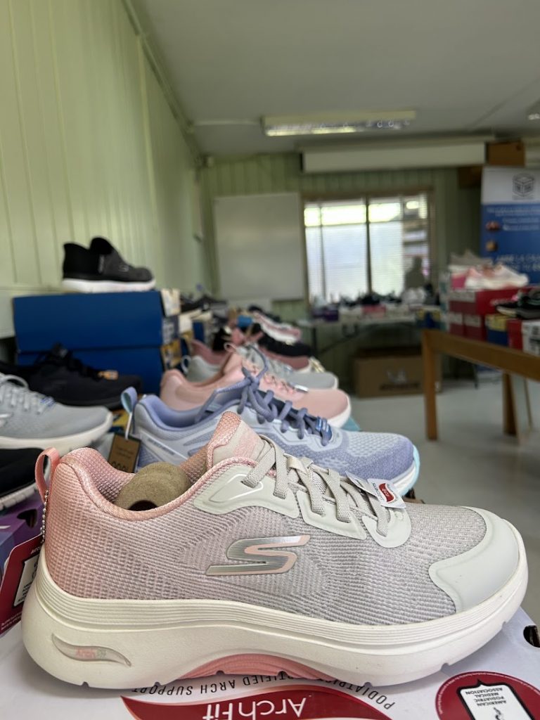 Exposición de zapatillas con descuento para afiliados(as). Concepción, oct./2025.